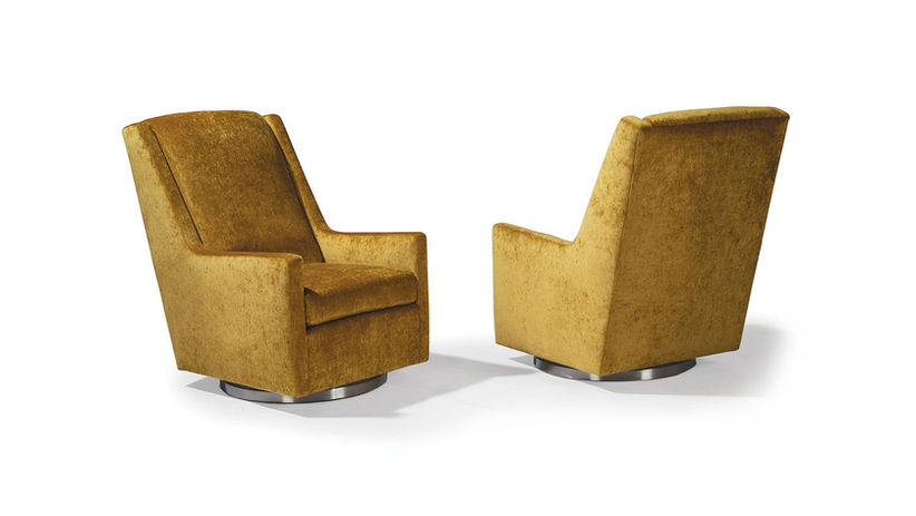 Swivel lounge base available in either brushed stainless or with a brushed bronze, plated finish