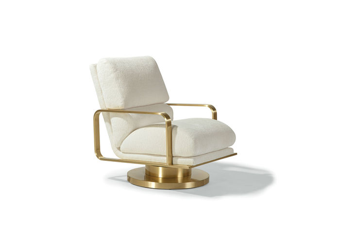 Curvaceous back and seat cushions provide the ultimate luxurious ergonomic comfort. The swivel rocking mechanism delivers a smooth ride while the stunning arm design connects seamlessly into the metal platform. The substantial base is powerful in look and performance.